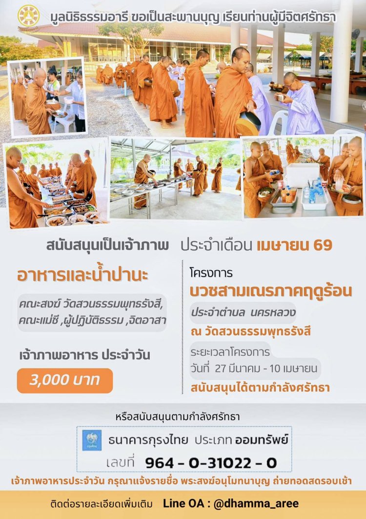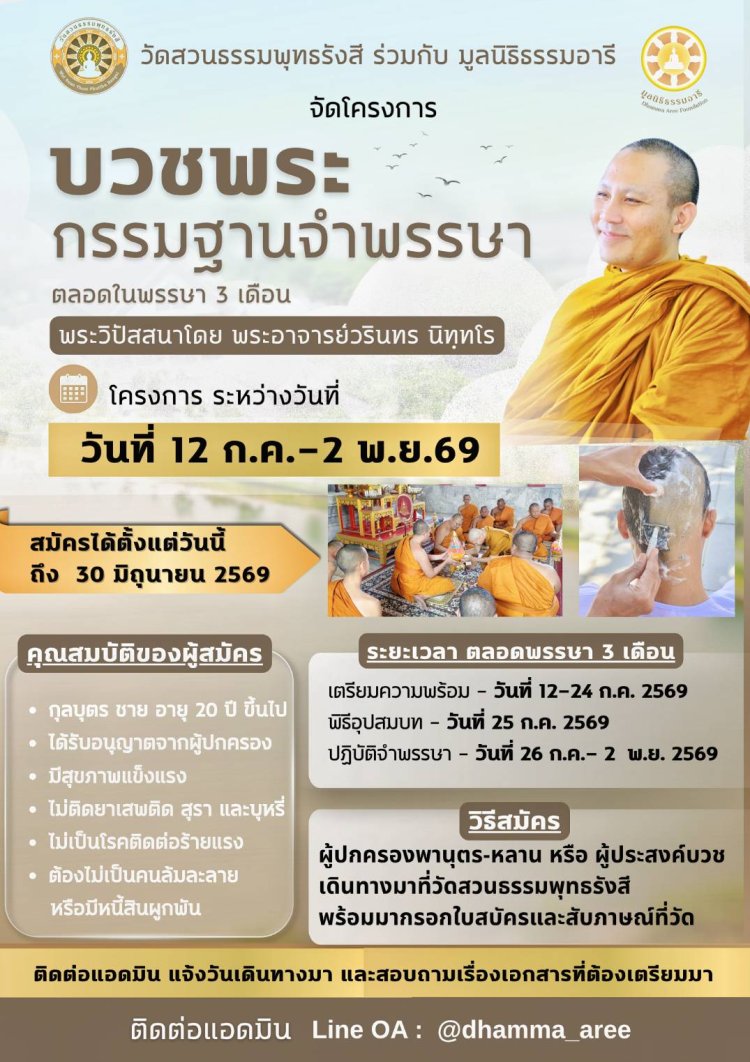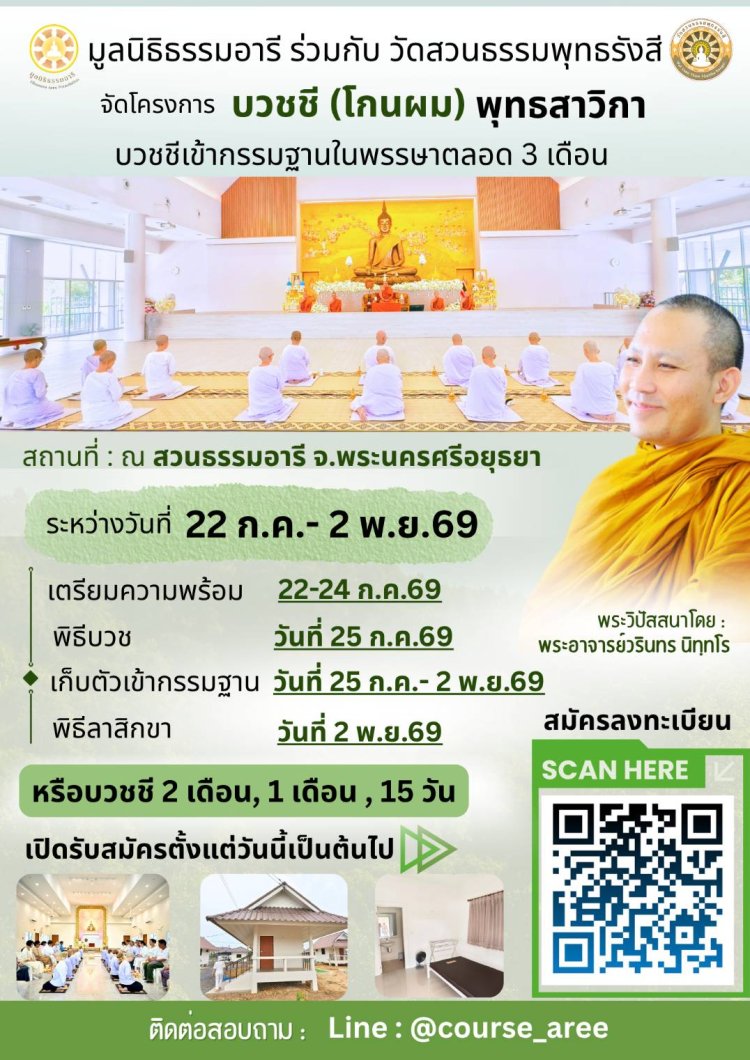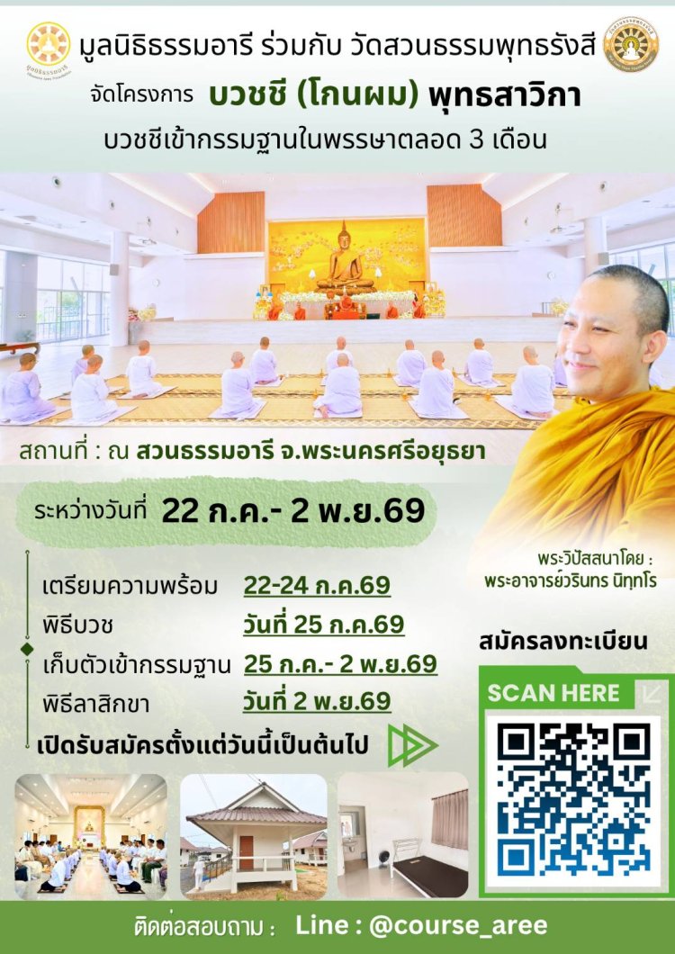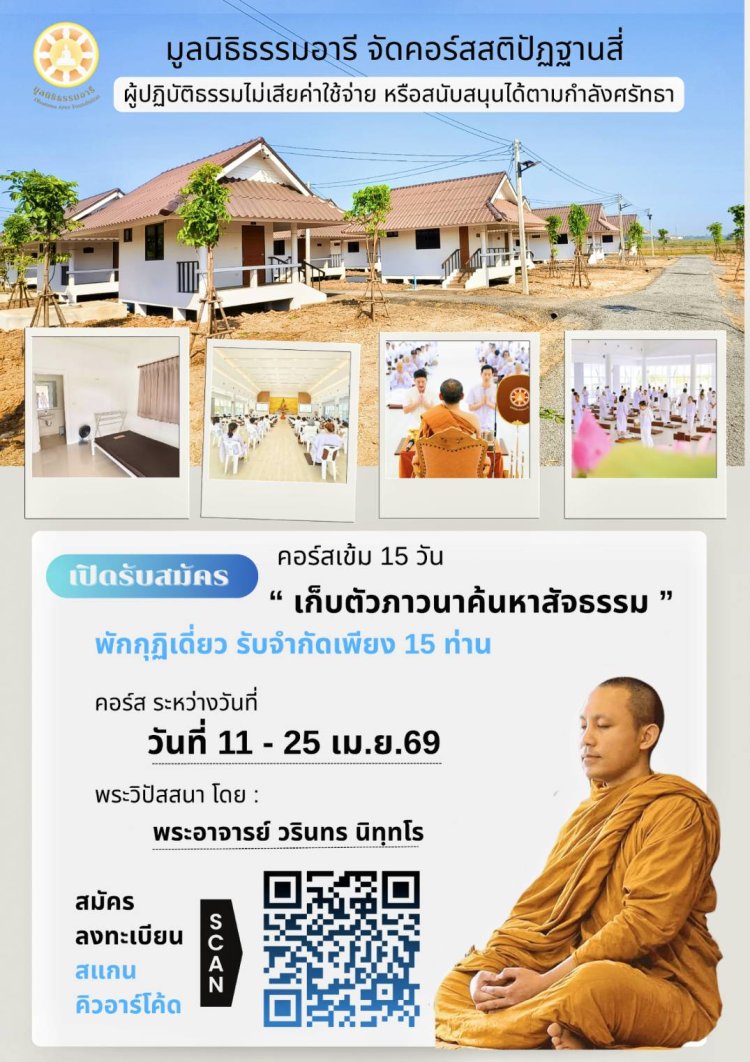 คอร์สจัดโดยสวนธรรมอารี 15 วัน วันที่ 11-25 เม.ย.69