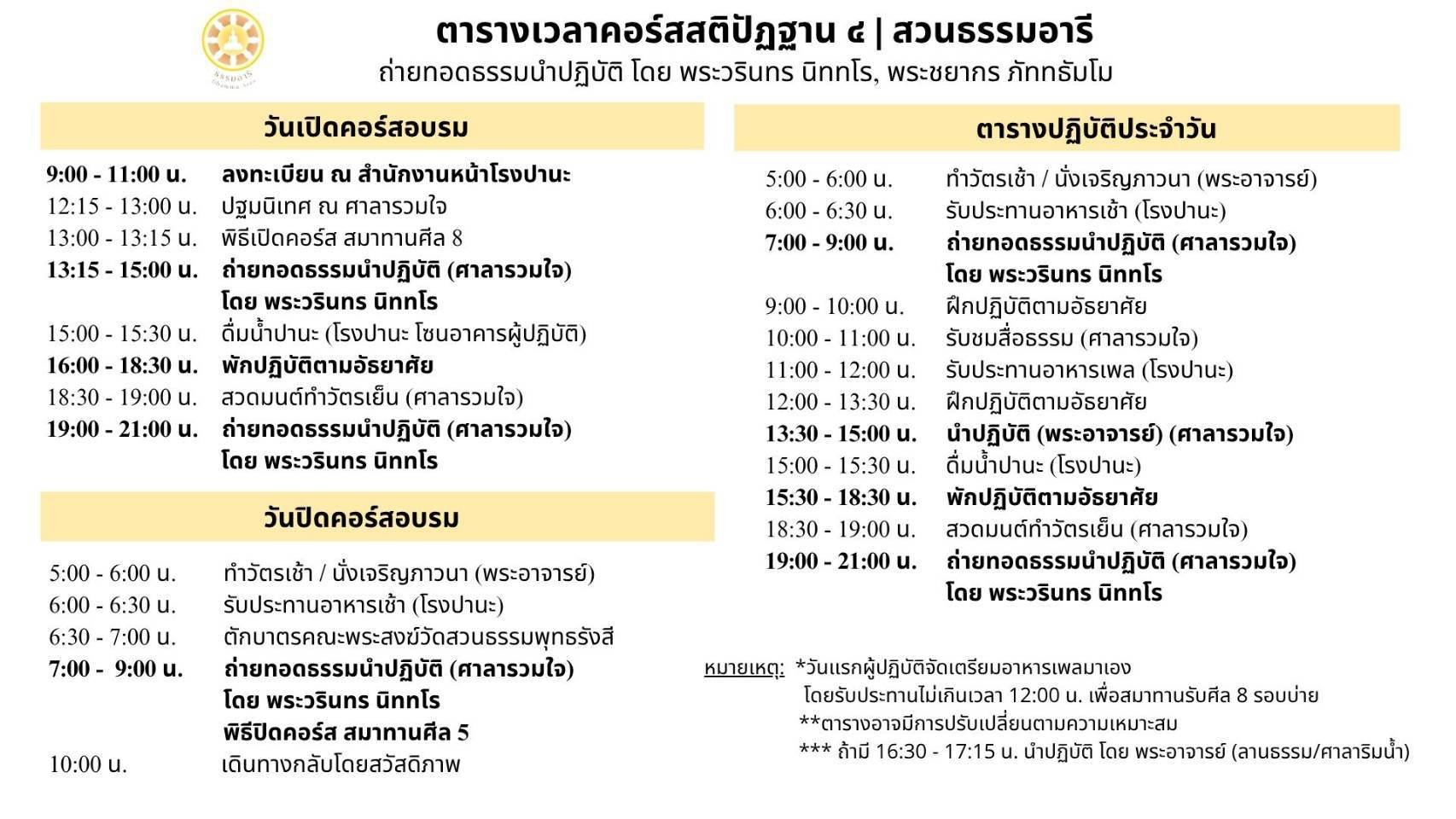 ตารางเวลาคอร์สสติปัฏฐานสี่ คอร์ส ๓ - ๙ วัน