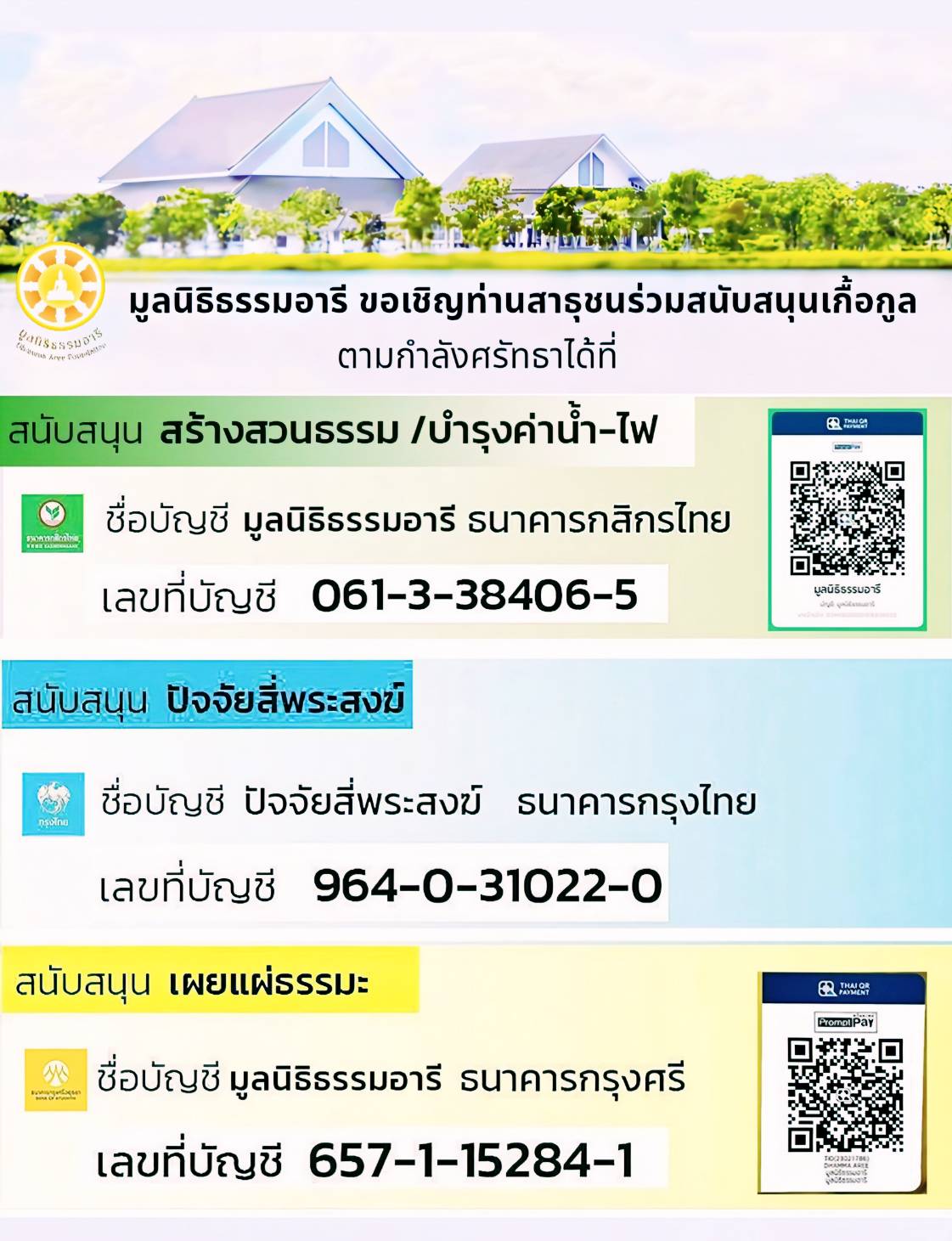 ท่านสาธุชนผู้มีจิตศรัทธา สามารถร่วมสนับสนุนเกื้อกูล