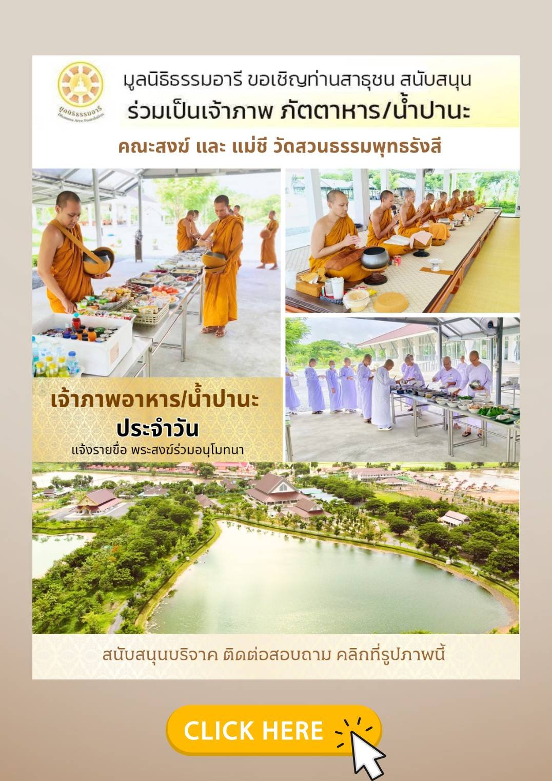 มูลนิธิธรรมอารี ขอประชาสัมพันธ์ โครงการถวายอาหารและน้ำปานะ คณะสงฆ์วัดสวนธรรมพุทธรังสี